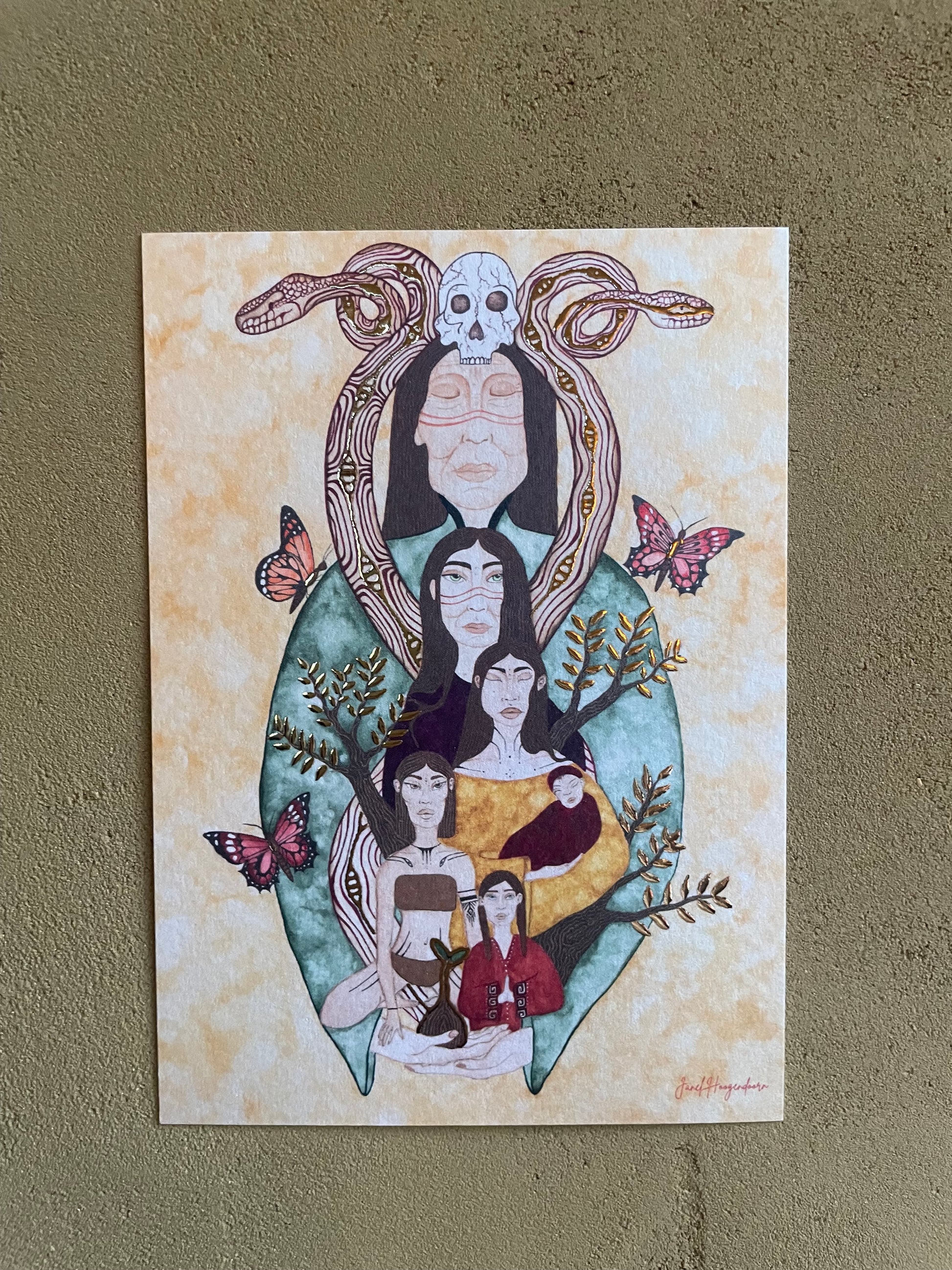 De slang kronkelt door ons innerlijk blauwdruk, beweegt door de lagen van vergeten verhalen, laat oude patronen los en opent de weg naar transformatie. Ze nodigt ons uit te herinneren dat onze wijsheid, onze kracht, nooit verloren gaat—alleen verandert van vorm.