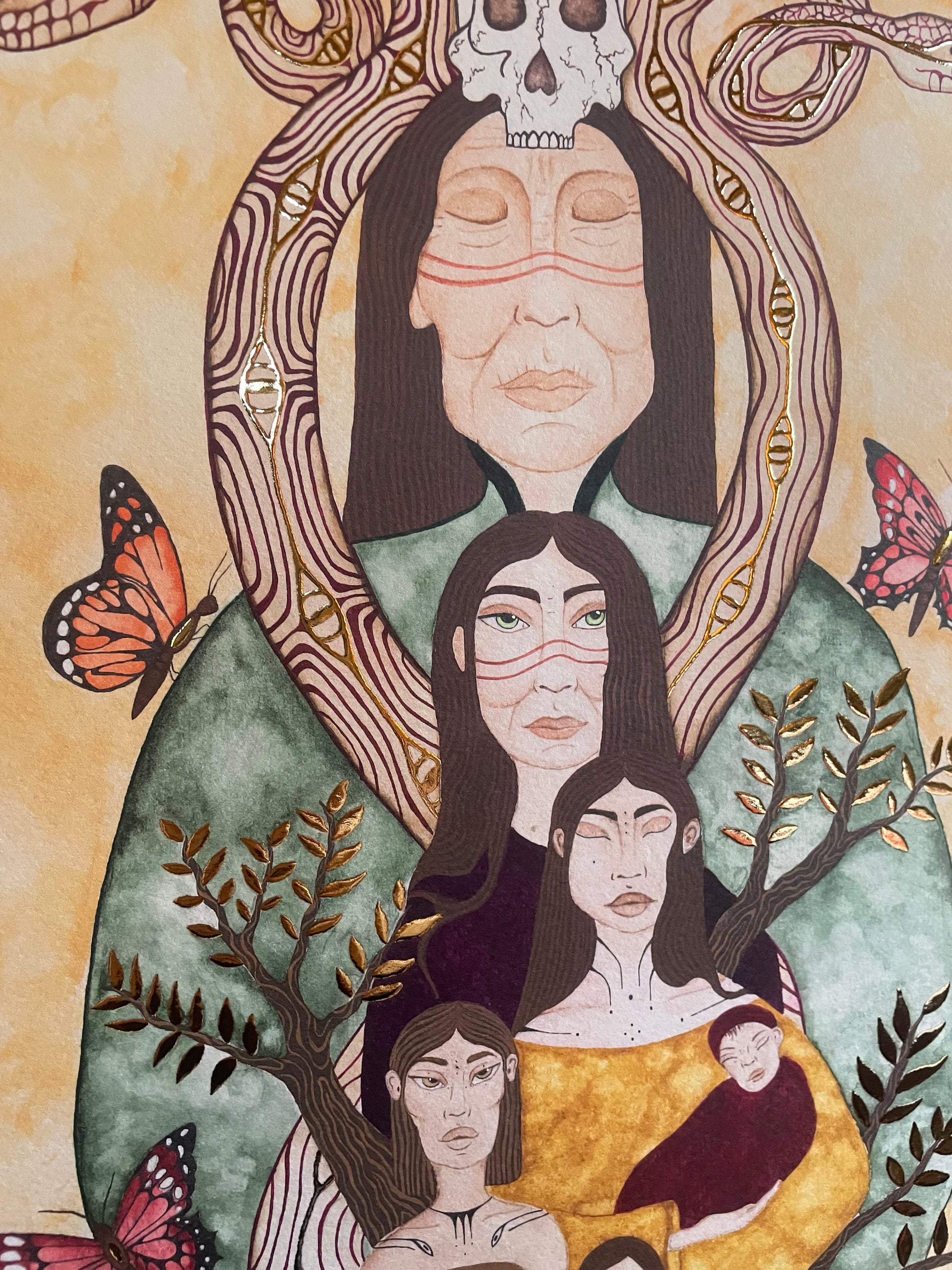 Een zachte adem glijdt door de tijd, een fluistering die door de generaties van vrouwen danst, van moeders naar dochters, van grootmoeders naar hun kleindochters. In die fluistering ligt een kracht zo oud als de aarde zelf, een zaadje klein en kwetsbaar, maar vol van scheppingskracht en belofte. Het draagt het geheugen van wie we zijn en wie we nog kunnen worden.